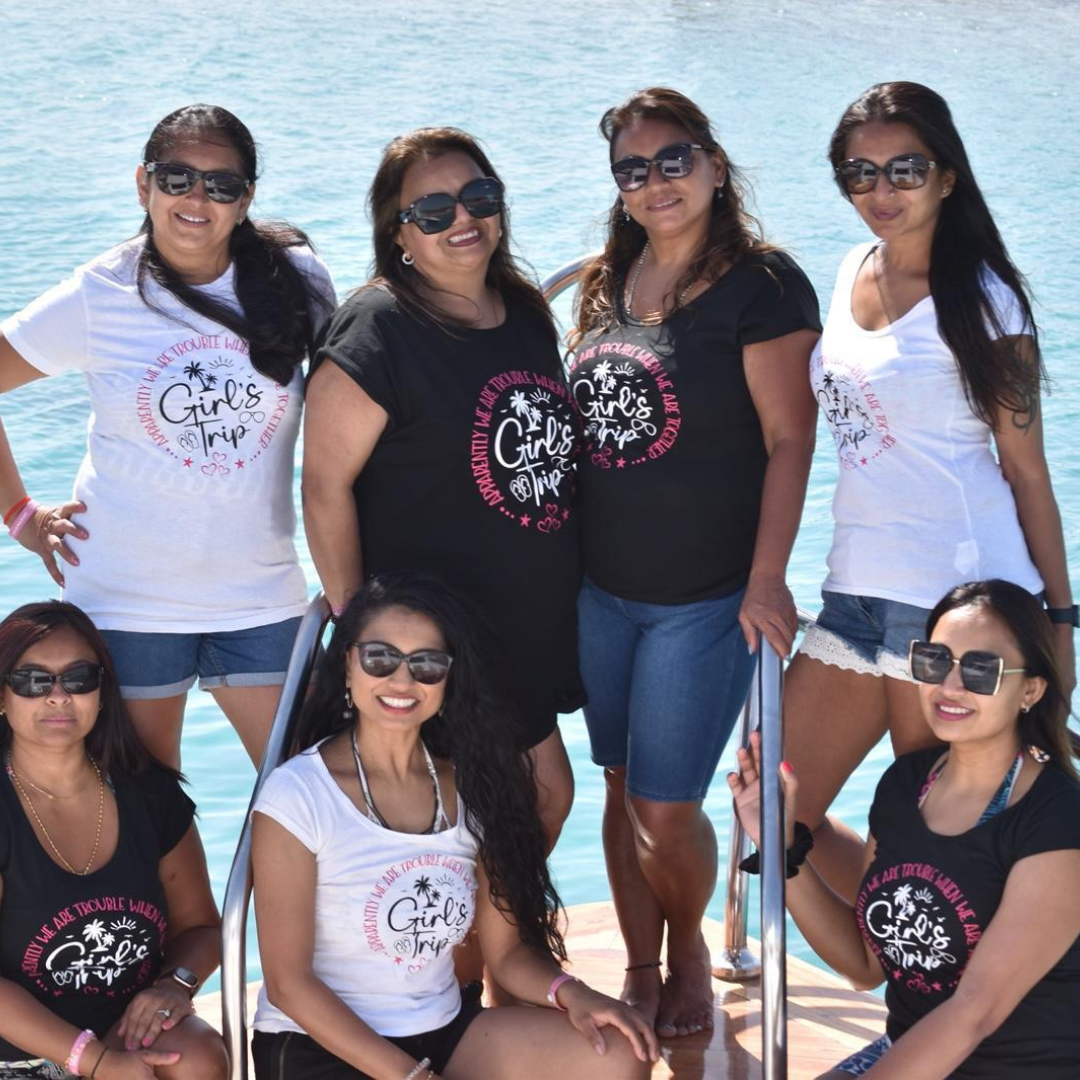 Get ready to turn heads and make memories with our Girl’s Trip T-Shirt! Designed for those epic getaways with your besties, this stylish and comfy tee is a must-have for your squad. With a fun and bold design, it’s perfect for beach days, city breaks, or just causing mischief together!